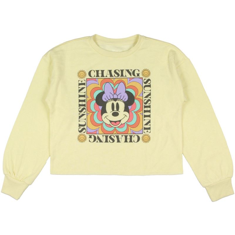 - تصميم رائع لشخصية: يتميز هذا السويت شيرت الأصفر الباهت بتصميم ميني ماوس "مطاردة الشمس" من الأمام. يمزج هذا السويت شيرت بين سحر ميني ماوس والأناقة العصرية، مثالي للفتيات اللواتي يعشقن شخصية ديزني المحبوبة. يُعدّ هذا القميص القصير ذو الحواف غير المبطنة إضافة رائعة لخزانة ملابس أي فتاة عصرية.