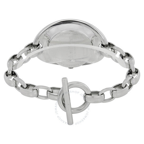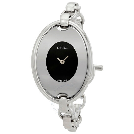 علبة من الفولاذ المقاوم للصدأ مع سوار سلسلة من الفولاذ المقاوم للصدأ. إطار ثابت من الفولاذ المقاوم للصدأ. ميناء أسود بعقارب فضية اللون. بدون مؤشرات. نوع الميناء: تناظري. حركة كوارتز. زجاج معدني مقاوم للخدش. تاج قابل للسحب/الدفع. غطاء خلفي صلب. شكل دائري. حجم العلبة: ٢٩ مم. سمكها: ٨ مم. عرض السوار: ٨ مم. طول السوار: ٦ بوصات. مشبك مجوهرات. مقاومة للماء حتى عمق ٣٠ مترًا / ١٠٠ قدم. الوظائف: الساعات، الدقائق. تصميم كاجوال. علامة الساعة: صناعة سويسرية. ساعة كالفن كلاين النسائية المميزة بمينا أسود K3H23121.