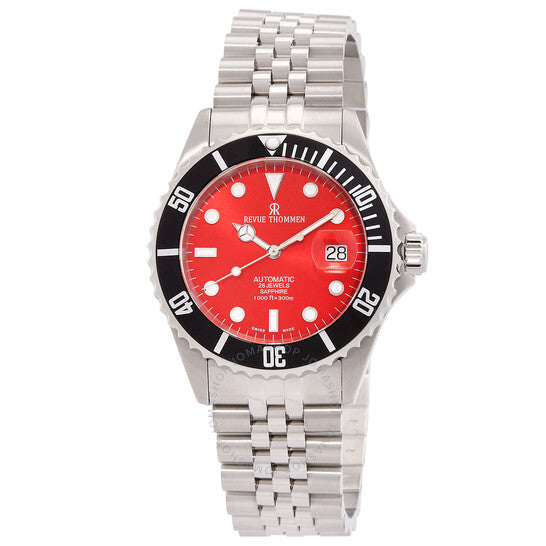 علبة من الفولاذ المقاوم للصدأ مع سوار من الفولاذ المقاوم للصدأ. إطار دوار أحادي الاتجاه من الفولاذ المقاوم للصدأ بحلقة سوداء مرصعة. ميناء أحمر بعقارب فضية مضيئة وعلامات ساعات منقطة. علامات دقائق حول الحافة الخارجية. نوع الميناء: تناظري. عقارب وعلامات مضيئة. عرض التاريخ عند موضع الساعة 3. آلية حركة أوتوماتيكية. زجاج ياقوت مقاوم للخدش. تاج لولبي. غطاء خلفي صلب. شكل دائري. حجم العلبة: 42 مم. سمكها: 12.65 مم. عرض السوار: 22 مم. طول السوار: 8 بوصات. مشبك قابل للطي بزر ضغط. مقاومة للماء حتى عمق 300 متر / 1000 قدم. الوظائف: التاريخ، الساعة، الدقيقة، الثانية. سلسلة دايفر. طراز ساعة غوص. علامة الساعة: صناعة سويسرية. ساعة ريڤو ثومين دايفر أوتوماتيكية للرجال بمينا أحمر، 17571.2238.