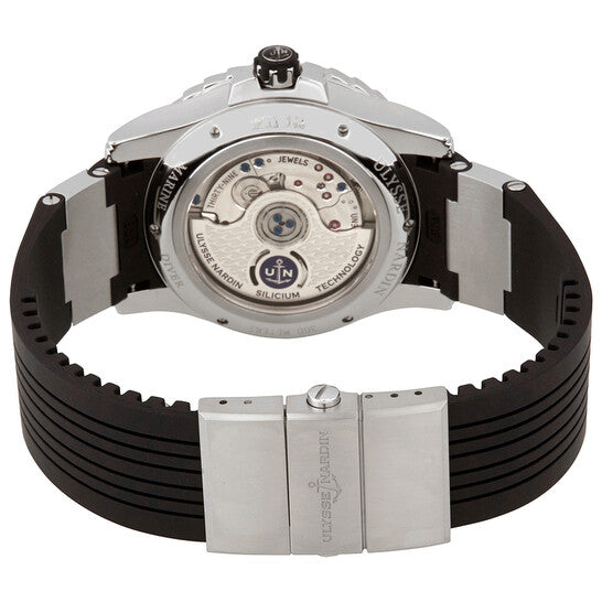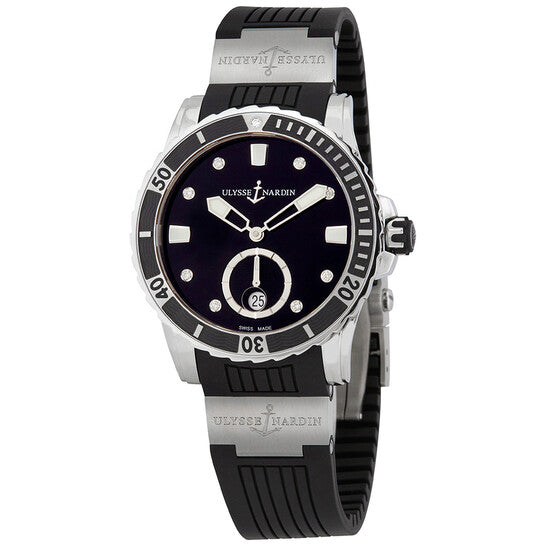 علبة من الفولاذ المقاوم للصدأ مع سوار مطاطي أسود بعناصر من التيتانيوم. إطار دوار أحادي الاتجاه من الفولاذ المقاوم للصدأ مع ترصيع أسود متموج. ميناء أسود بعقارب فضية مضيئة وعلامات ساعات من الألماس. علامات دقائق حول الحافة الخارجية. نوع الميناء: تناظري. عقارب وعلامات مضيئة. عرض التاريخ عند موضع الساعة السادسة. ميناء فرعي للثواني الصغيرة. حركة أوتوماتيكية من أوليس ناردين، عيار UN-320، مع احتياطي طاقة لمدة 48 ساعة. زجاج من الياقوت المقاوم للخدش. تاج لولبي. غطاء خلفي صلب. حجم العلبة: 40 مم. شكل دائري. مشبك قابل للطي. مقاومة للماء حتى عمق 300 متر / 1000 قدم. الوظائف: التاريخ، الساعة، الدقائق، الثواني. تصميم ساعة فاخرة. علامة الساعة: صناعة سويسرية. ساعة أوليس ناردين دايفر نسائية بمينا أسود من الألماس، 3203-190-3/12.
