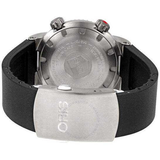 علبة من التيتانيوم مع سوار مطاطي أسود. إطار من التيتانيوم. ميناء أسود بعقارب مضيئة وعلامات ساعات ومؤشرات دقيقة. تظهر أيام الأسبوع حول الحافة الخارجية. عقارب وعلامات مضيئة. نافذة عرض التاريخ عند موضع الساعة السادسة. كرونوغراف - ميناءان فرعيان يعرضان: 60 ثانية و12 ساعة. آلية حركة أوتوماتيكية من أوريس. زجاج ياقوت مقاوم للخدش والانعكاس. تاج أمان لولبي. غطاء خلفي صلب. قطر العلبة: 44 مم. سُمكها: 14.8 مم. مشبك قابل للطي. مقاومة للماء حتى عمق 1000 متر / 3300 قدم. الوظائف: غواصين، ثواني، تاريخ، ساعات. ساعة أوريس دايفرز دير مايسترتاشر ريجولاتور أوتوماتيكية للرجال 649-7541-7164RS.