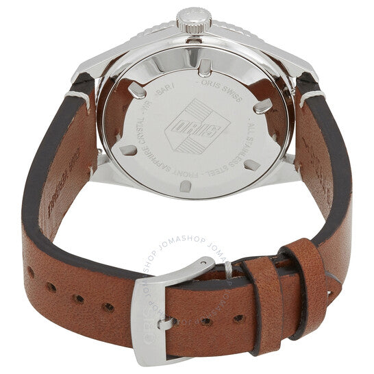 علبة من الفولاذ المقاوم للصدأ مع سوار جلدي بني. إطار دوار أحادي الاتجاه من الفولاذ المقاوم للصدأ بحلقة سوداء. ميناء أزرق بعقارب فضية مضيئة وعلامات ساعات منقطة. علامات دقائق حول الحافة الخارجية. نوع الميناء: تناظري. عقارب وعلامات مضيئة. عرض التاريخ عند موضع الساعة السادسة. عيار أوريس 733، حركة أوتوماتيكية أساسية SW 200-1، مبنية على SW 200-1، تحتوي على 26 جوهرة، تنبض بمعدل 28800 ذبذبة في الساعة، ولديها احتياطي طاقة لمدة 38 ساعة تقريبًا. زجاج من الياقوت المقاوم للخدش. تاج لولبي. غطاء خلفي صلب. شكل دائري. حجم العلبة: 40 مم. سمكها: 13.14 مم. عرض السوار: 20 مم. مشبك تانغ. مقاومة للماء حتى عمق 100 متر / 330 قدمًا. الوظائف: التاريخ، الساعة، الدقائق، الثواني. تصميم ساعة كاجوال. علامة الساعة: صناعة سويسرية. ساعة أوريس دايفرز سيكستي فايف أوتوماتيكية للرجال بمينا أزرق 01 733 7707 4055-07 5 20 45.