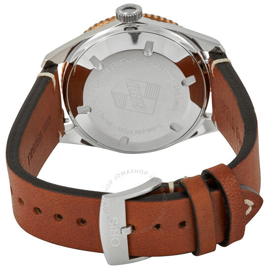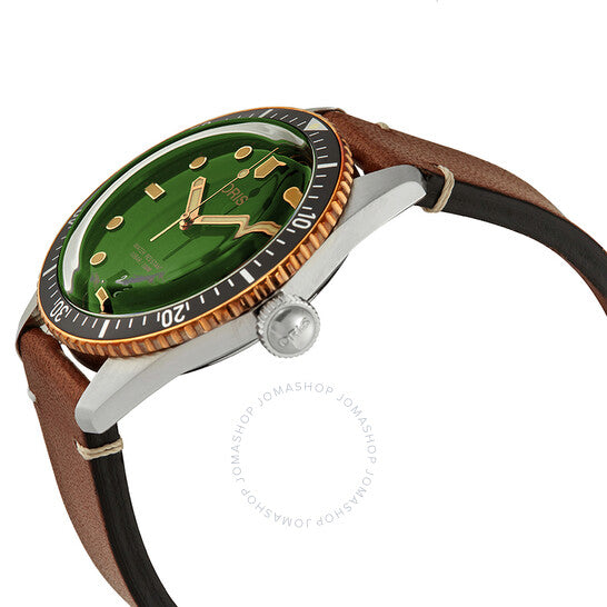 علبة من الفولاذ المقاوم للصدأ مع سوار جلدي بني. إطار دوار أحادي الاتجاه مطلي بمادة DLC سوداء اللون مع حافة خارجية من البرونز. ميناء أخضر بعقارب برونزية مضيئة وعلامات ساعات منقطة. علامات دقائق حول الحافة الخارجية. نوع الميناء: تناظري. عقارب وعلامات مضيئة. عرض التاريخ عند موضع الساعة السادسة. عيار أوريس 733، حركة أوتوماتيكية أساسية SW 200-1، مبنية على SW 200-1، تحتوي على 26 جوهرة، تنبض بمعدل 28800 ذبذبة في الساعة، ولديها احتياطي طاقة لمدة 38 ساعة تقريبًا. زجاج من الياقوت المقاوم للخدش. تاج لولبي. غطاء خلفي صلب. شكل دائري. حجم العلبة: 40 مم. سمك العلبة: 13.14 مم. عرض السوار: 20 مم. مشبك تانغ. مقاومة للماء حتى عمق 100 متر / 330 قدمًا. الوظائف: التاريخ، الساعة، الدقائق، الثواني. تصميم ساعة كاجوال. علامة الساعة: صناعة سويسرية. ساعة أوريس دايفرز سيكستي فايف أوتوماتيكية للرجال بمينا أخضر 01 733 7707 4357-07 5 20 45.