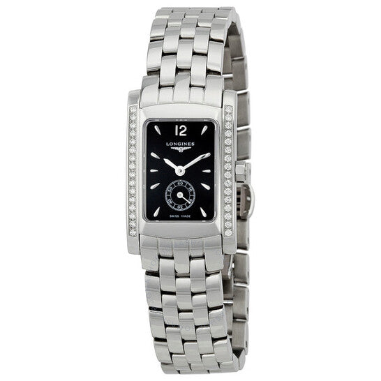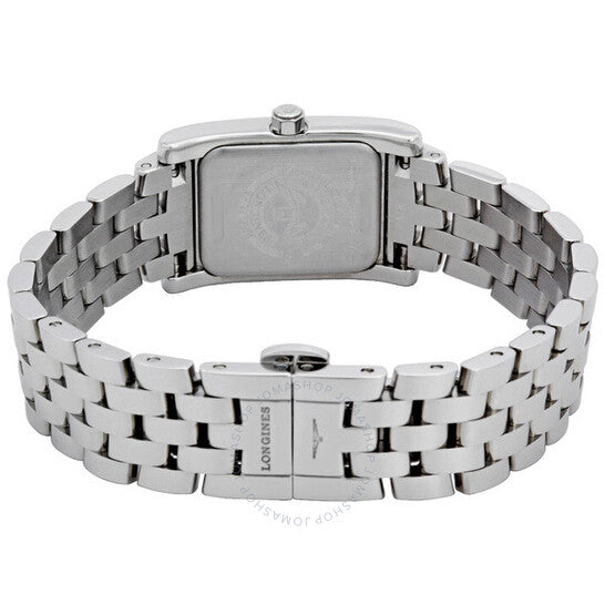 علبة من الفولاذ المقاوم للصدأ مع سوار من الفولاذ المقاوم للصدأ. إطار ثابت من الفولاذ المقاوم للصدأ مرصع بـ 32 ماسة. ميناء أسود بعقارب فضية اللون وعلامات ساعات. أرقام عربية تشير إلى موضع الساعة 12. ميناء فرعي للثواني عند موضع الساعة 6. آلية حركة كوارتز سويسرية. زجاج ياقوت مقاوم للخدش. أبعاد العلبة: 20 مم × 24.5 مم. سُمك العلبة: 6.5 مم. مشبك مزدوج قابل للطي بزر ضغط. مقاومة للماء حتى عمق 30 مترًا / 100 قدم. ساعة لونجين دولتشي فيتا النسائية الماسية L51550766.