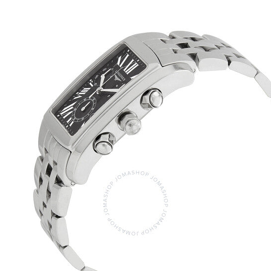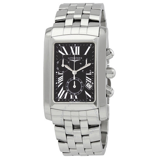 علبة من الفولاذ المقاوم للصدأ مع سوار من الفولاذ المقاوم للصدأ. إطار ثابت من الفولاذ المقاوم للصدأ. ميناء أسود بعقارب فضية اللون وعلامات ساعات رومانية. علامات دقائق حول الحافة الخارجية. نوع الميناء: تناظري. عرض التاريخ بين موضعي الساعة الرابعة والخامسة. كرونوغراف - ثلاثة أقراص فرعية تعرض: ٦٠ ثانية، ٣٠ دقيقة، و١/١٠ من الثانية. آلية حركة كوارتز. زجاج ياقوت مقاوم للخدش. تاج قابل للسحب/الدفع. غطاء خلفي صلب. شكل مستطيل. أبعاد العلبة: ٣٠ مم × ٣٦.٥ مم. سُمك العلبة: ١٠.٢٥ مم. مشبك قابل للطي. مقاومة للماء حتى عمق ٣٠ مترًا / ١٠٠ قدم. الوظائف: التاريخ، الساعة، الدقيقة، الثانية. معلومات إضافية: العلبة الأصلية، دليل الاستخدام (ملحقات كاملة). سلسلة دولتشي فيتا. تصميم ساعة فاخرة. علامة الساعة: صناعة سويسرية. ساعة لونجين دولتشي فيتا كوارتز نسائية بمينا سوداء، L5.680.4.79.6.