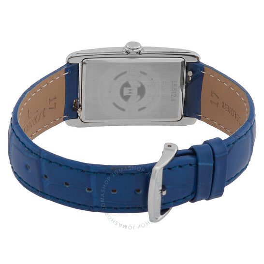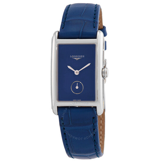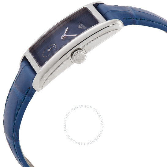 علبة من الفولاذ المقاوم للصدأ فضية اللون مع سوار جلدي أزرق. إطار ثابت من الفولاذ المقاوم للصدأ فضي اللون. ميناء أزرق مع عقارب فضية اللون. نوع الميناء: تناظري. ميناء فرعي واحد يعرض الثواني الصغيرة. حركة كوارتز لونجين كاليبر L176. زجاج ياقوتي مقاوم للخدش. غطاء خلفي صلب. شكل العلبة مستطيل، مقاسها 23 مم. مشبك بإبزيم. مقاومة للماء حتى عمق 30 مترًا / 100 قدم. الوظائف: الساعات، الدقائق، الثواني الصغيرة. معلومات إضافية: العلبة الأصلية، بطاقة الضمان الدولية، دليل الاستخدام (ملحقات كاملة). سلسلة دولتشي فيتا. تصميم ساعة فاخر. علامة الساعة: صناعة سويسرية. ساعة لونجين دولتشي فيتا كوارتز نسائية بمينا زرقاء، L5.512.4.90.2.