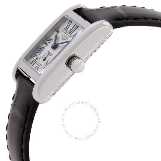 علبة فضية اللون من الفولاذ المقاوم للصدأ مع سوار أسود من جلد التمساح. إطار ثابت فضي اللون من الفولاذ المقاوم للصدأ. ميناء فضي اللون بعقارب زرقاء وعلامات ساعات بأرقام رومانية. مقياس دقائق حول الحافة الداخلية. نوع الميناء: تناظري. ميناء فرعي واحد يعرض الثواني الصغيرة. حركة كوارتز لونجين كاليبر L178. زجاج ياقوتي مقاوم للخدش. غطاء خلفي صلب. شكل العلبة مستطيل، أبعادها: 21.50 مم × 29.00 مم. مشبك بإبزيم. مقاومة للماء حتى عمق 30 مترًا / 100 قدم. الوظائف: الساعات، الدقائق، الثواني الصغيرة. معلومات إضافية: العلبة الأصلية، بطاقة الضمان الدولية، دليل الاستخدام (ملحقات كاملة). سلسلة دولتشي فيتا. تصميم ساعة فاخر. ملصق الساعة: صناعة سويسرية. ساعة لونجين دولتشي فيتا كوارتز نسائية بمينا فضي، L5.200.4.71.2.
