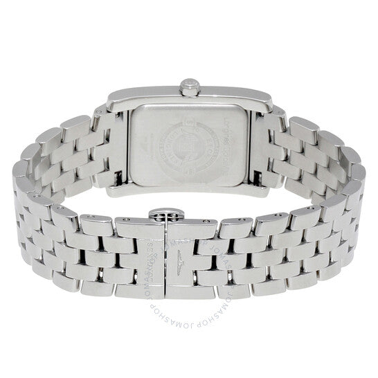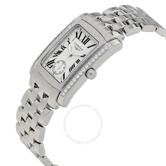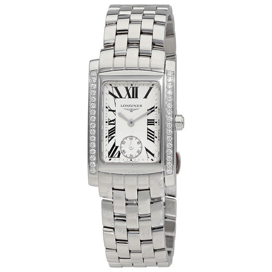 علبة من الفولاذ المقاوم للصدأ مع سوار من الفولاذ المقاوم للصدأ. إطار ثابت مرصع بالألماس. ميناء فضي اللون بعقارب فضية اللون وعلامات ساعات بأرقام رومانية. علامات دقائق حول الحافة الخارجية. نوع الميناء: تناظري. ميناء فرعي للثواني الصغيرة. آلية حركة كوارتز. زجاج ياقوت مقاوم للخدش. حجم العلبة: ٢٢.٤ مم. سُمكها: ٢٦.٨٥ مم. شكلها دائري. مشبك طي مخفي. مقاومة للماء حتى عمق ٣٠ مترًا / ١٠٠ قدم. وظائفها: الساعات، الدقائق، الثواني. تصميم ساعة فاخرة. علامة الساعة: صناعة سويسرية. إصدارات المنتج: L5.502.0.71.6. ساعة لونجين دولتشي فيتا النسائية بمينا فضي ومرصعة بالألماس L5.502.0.71.6.