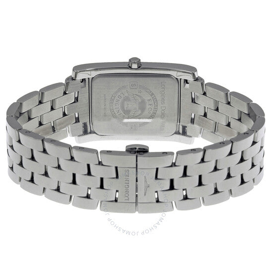 علبة من الفولاذ المقاوم للصدأ مع سوار من الفولاذ المقاوم للصدأ. إطار ثابت من الفولاذ المقاوم للصدأ. ميناء أسود بعقارب فضية اللون وعلامات ساعات. أرقام عربية تشير إلى موضع الساعة ١٢. نوع الميناء: تناظري. ميناء فرعي للثواني فوق موضع الساعة ٦. حركة كوارتز. زجاج من الياقوت المقاوم للخدش. غطاء خلفي صلب مقاوم للضغط. أبعاد العلبة: ٣٢.١ مم × ٢٦.٣ مم. عرض السوار: ١٧ مم / ١٩ مم. طول السوار: ٧ بوصات. مشبك قابل للطي بزر ضغط. مقاومة للماء حتى عمق ٣٠ مترًا / ١٠٠ قدم. الوظائف: الساعات، الدقائق، الثواني. تصميم كاجوال. ساعة لونجين دولتشي فيتا للرجال من الفولاذ المقاوم للصدأ L56554766.