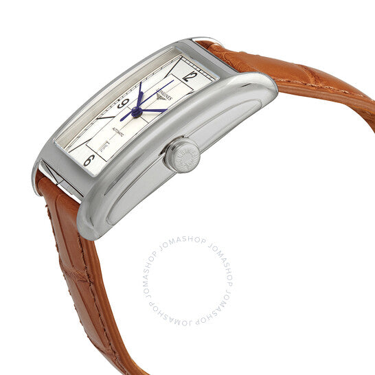 علبة من الفولاذ المقاوم للصدأ مع سوار من جلد التمساح بيج. إطار ثابت من الفولاذ المقاوم للصدأ. ميناء فضي بعقارب زرقاء وعلامات ساعات. مؤشرات رقمية عربية عند الساعة 3، 6، 9، و12. علامات دقائق حول الحافة الخارجية. نوع الميناء: تناظري. عرض التاريخ أعلى الساعة 6. حركة لونجين أوتوماتيكية من عيار L592، مبنية على ETA A20.L01، تحتوي على 22 جوهرة، تنبض بتردد 28800 ذبذبة في الساعة، ولديها احتياطي طاقة يصل إلى 40 ساعة تقريبًا. زجاج ياقوت مقاوم للخدش. تاج قابل للسحب/الدفع. غطاء خلفي صلب. شكل مستطيل. أبعاد العلبة: 27.7 مم × 43.8 مم. سمك العلبة: 10.1 مم. عرض السوار: 19 مم. مشبك تانغ. مقاومة للماء حتى عمق 30 مترًا / 100 قدم. الوظائف: التاريخ، الساعة، الدقائق، الثواني. سلسلة دولتشي فيتا. تصميم ساعة رسمية. علامة الساعة: صناعة سويسرية. ساعة لونجين دولتشي فيتا أوتوماتيكية للرجال بمينا فضي L5.757.4.73.3.