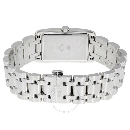 علبة من الفولاذ المقاوم للصدأ مع سوار من الفولاذ المقاوم للصدأ. إطار ثابت من الفولاذ المقاوم للصدأ مرصع بالألماس. ميناء فضي مزخرف بعقارب زرقاء وعلامات ساعات رومانية. علامات دقائق حول حلقة داخلية. نوع الميناء: تناظري. موانئ فرعية للثواني. آلية حركة كوارتز. كريستال ياقوتي مقاوم للخدش. غطاء خلفي صلب. أبعاد العلبة: ٢٣ مم × ٣٧ مم. سُمكها: ٧.٢ مم. شكلها مستطيل. عرض السوار: ١٧ مم. مشبك قابل للطي بزر ضغط. مقاومة للماء حتى عمق ٣٠ مترًا / ١٠٠ قدم. وظائفها: الساعات، الدقائق، الثواني. طراز ساعة رسمية. علامة الساعة: صناعة سويسرية. ساعة لونجين دولتشي فيتا النسائية، بمينا فضي مزخرف، L55120716.