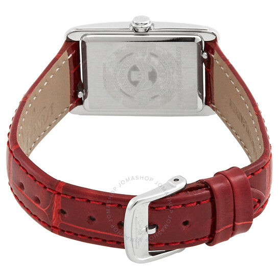علبة من الفولاذ المقاوم للصدأ مع سوار من جلد العجل الأحمر. إطار ثابت من الفولاذ المقاوم للصدأ. ميناء فضي بعقارب زرقاء وعلامات ساعات رومانية. علامات دقائق حول حلقة داخلية. نوع الميناء: تناظري. ميناء فرعي واحد يعرض الثواني الصغيرة. حركة كوارتز من عيار لونجين L178. زجاج ياقوت مقاوم للخدش. غطاء خلفي صلب. شكل العلبة مستطيل. أبعاد العلبة: 20.5 مم × 32 مم. سمك العلبة: 6.9 مم. عرض السوار: 15 مم. مشبك تانغ. مقاومة للماء حتى عمق 30 مترًا / 100 قدم. الوظائف: الساعات، الدقائق، الثواني الصغيرة. سلسلة دولتشي فيتا. طراز ساعة رسمية. علامة الساعة: صناعة سويسرية. إصدارات المنتج: L5.255.4.71.5. ساعة لونجين دولتشي فيتا النسائية بمينا فضي L5.255.4.71.5.