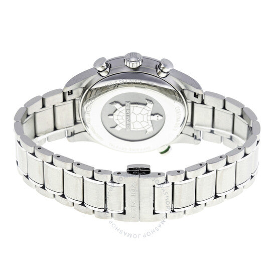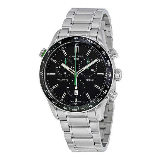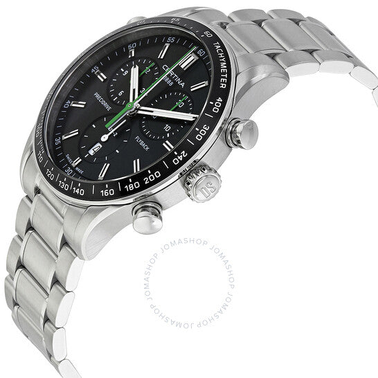 علبة فضية اللون من الفولاذ المقاوم للصدأ مع سوار فضي اللون. إطار ثابت من الفولاذ المقاوم للصدأ مع حلقة علوية سوداء بمقياس سرعة الدوران. ميناء أسود بعقارب ومؤشرات ساعات فضية مضيئة. مؤشرات دقائق حول الحافة الخارجية. نوع الميناء: تناظري. عقارب ومؤشرات مضيئة. عرض التاريخ عند موضع الساعة السادسة. كرونوغراف - ثلاثة موانئ فرعية تعرض: 60 ثانية، 30 دقيقة، و12 ساعة. حركة كوارتز عيار ETA 251.294 PRD. كريستال ياقوتي مقاوم للخدش. غطاء خلفي صلب. شكل دائري، مقاس العلبة: 43 مم، سمكها: 14 مم. عرض السوار: 20 مم. مشبك قابل للطي. مقاومة للماء حتى عمق 100 متر / 330 قدمًا. الوظائف: كرونوغراف، تاريخ، ساعة، دقيقة، ثانية، مقياس سرعة الدوران. سلسلة Ds-2 Flyback. تصميم ساعة فاخرة. علامة الساعة: سويسرية الصنع. اختلافات المنتج: C0246181105102. ساعة سيرتينا DS-2 فلايباك كرونوغراف للرجال بمينا سوداء C024.618.11.051.02.