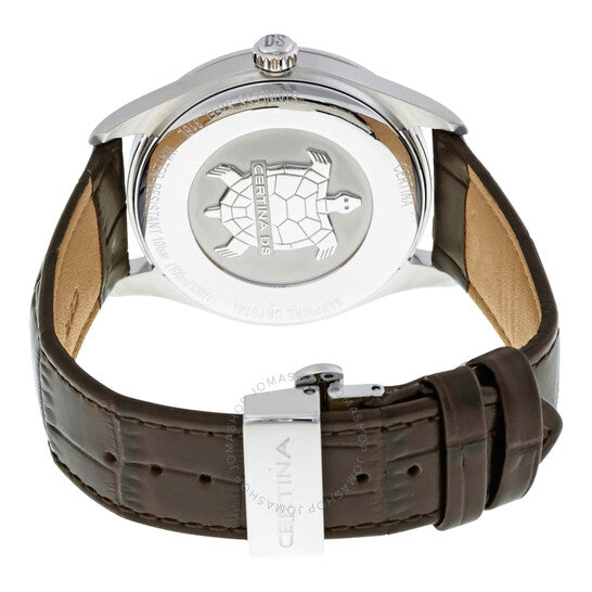 علبة من الفولاذ المقاوم للصدأ مع سوار جلدي بني. إطار ثابت من الفولاذ المقاوم للصدأ. ميناء فضي بعقارب مضيئة بلون الذهب الوردي وعلامات ساعات. علامات دقائق حول الحافة الخارجية. نوع الميناء: تناظري. عرض التاريخ أعلى موضع الساعة السادسة. حركة كوارتز. زجاج من الياقوت المقاوم للخدش. غطاء خلفي صلب. حجم العلبة: 40 مم. سُمكها: 9.45 مم. شكلها دائري. مشبك قابل للطي. مقاومة للماء حتى عمق 100 متر / 330 قدمًا. الوظائف: التاريخ، الساعة، الدقائق، الثواني. طراز ساعة رسمية. علامة الساعة: صناعة سويسرية. ساعة سيرتينا DS-2 بريسيدرايف للرجال بمينا فضي، C024.410.16.031.21.
