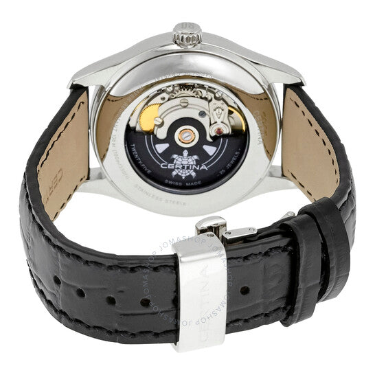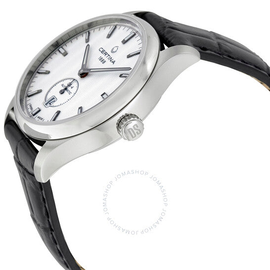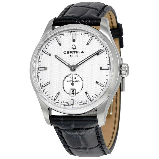 علبة من الفولاذ المقاوم للصدأ مع سوار جلدي أسود. إطار ثابت من الفولاذ المقاوم للصدأ. ميناء فضي مع عقارب وعلامات ساعات فضية مضيئة. علامات دقائق حول الحافة الخارجية. نوع الميناء: تناظري. عقارب وعلامات مضيئة. عرض التاريخ عند موضع الساعة السادسة. ميناء فرعي للثواني الصغيرة. حركة أوتوماتيكية من عيار ETA 2825-2، مبنية على ETA 2824-2، تحتوي على 25 جوهرة، تنبض بمعدل 28800 ذبذبة في الساعة، ولديها احتياطي طاقة لمدة 42 ساعة تقريبًا. زجاج من الياقوت المقاوم للخدش. تاج قابل للسحب/الدفع. ظهر هيكلي. شكل دائري. حجم العلبة: 40 مم. سمكها: 12.45 مم. عرض السوار: 20 مم. مشبك قابل للطي. مقاومة للماء حتى عمق 100 متر / 330 قدمًا. الوظائف: التاريخ، الساعة، الدقائق، الثواني. سلسلة DS-4 للثواني الصغيرة الأوتوماتيكية. تصميم ساعة كاجوال. ملصق الساعة: صناعة سويسرية. ساعة سيرتينا DS-4 أوتوماتيكية صغيرة ثانية للرجال C022.428.16.031.00.