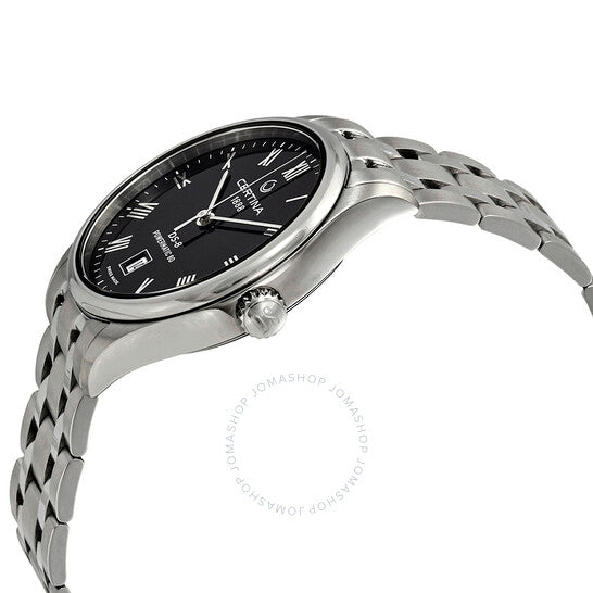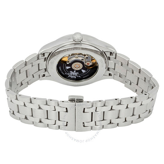 علبة من الفولاذ المقاوم للصدأ مع سوار من الفولاذ المقاوم للصدأ. إطار ثابت من الفولاذ المقاوم للصدأ. ميناء أسود بعقارب فضية اللون وعلامات ساعات رومانية. علامات دقائق حول الحافة الخارجية. نوع الميناء: تناظري. عرض التاريخ عند موضع الساعة السادسة. حركة أوتوماتيكية Powermatic 80.111، تحتوي على 23 جوهرة، تنبض بمعدل 28800 ذبذبة في الساعة، ولديها احتياطي طاقة لمدة 80 ساعة تقريبًا. زجاج ياقوت مقاوم للخدش. غطاء خلفي شفاف. شكل دائري. حجم الهيكل: 40 مم. سمك الهيكل: 10.45 مم. عرض السوار: 20 مم. مشبك فراشة. مقاومة للماء حتى عمق 100 متر / 330 قدمًا. الوظائف: التاريخ، الساعة، الدقيقة، الثانية. سلسلة DS-8. تصميم ساعة كاجوال. علامة الساعة: صناعة سويسرية. ساعة سيرتينا DS-8 أوتوماتيكية للرجال بمينا أسود C033.407.11.053.00.