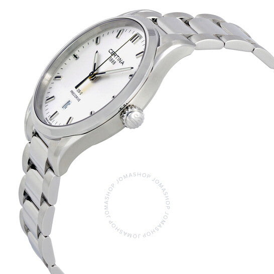 علبة من الفولاذ المقاوم للصدأ مع سوار من الفولاذ المقاوم للصدأ. إطار ثابت من الفولاذ المقاوم للصدأ. ميناء فضي مع عقارب ومؤشرات ساعات فضية مضيئة. مؤشرات دقائق حول الحافة الخارجية. نوع الميناء: تناظري. عقارب ومؤشرات مضيئة. عرض التاريخ عند موضع الساعة السادسة. حركة كوارتز ETA F06.411 PreciDrive. زجاج ياقوتي مقاوم للخدش. غطاء خلفي صلب. حجم العلبة: 40 مم. سمكها: 9.45 مم. شكلها دائري. عرض السوار: 20 مم. مشبك قابل للطي. مقاومة للماء حتى عمق 100 متر / 330 قدمًا. الوظائف: التاريخ، الساعة، الدقائق، الثواني. معلومات إضافية: مناسبة للغطس والسباحة، ولكنها غير مناسبة للغوص. تصميم كاجوال. ساعة سيرتينا DS 2 للرجال بمينا فضي C024.410.11.031.20.