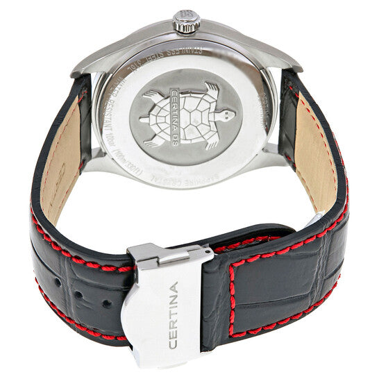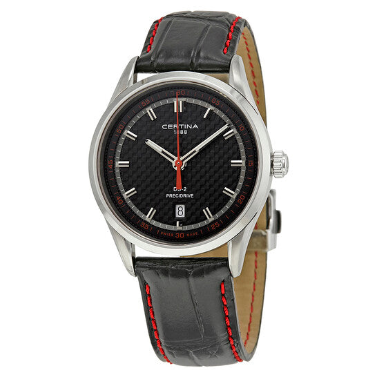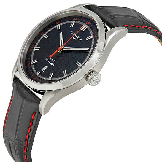 علبة من الفولاذ المقاوم للصدأ مع سوار جلدي أسود. إطار ثابت من الفولاذ المقاوم للصدأ. ميناء أسود بعقارب مضيئة وعلامات ساعات. علامات دقائق حول الحافة الخارجية. نوع الميناء: تناظري. عقارب وعلامات مضيئة. عرض التاريخ عند موضع الساعة السادسة. حركة كوارتز ETA عيار F06.411. زجاج ياقوتي مقاوم للخدش. تاج قابل للسحب/الدفع. غطاء خلفي صلب. حجم العلبة: 40 مم. سمكها: 10 مم. شكلها دائري. عرض السوار: 21 مم. مشبك تانغ. مقاومة للماء حتى عمق 100 متر / 330 قدمًا. الوظائف: التاريخ، الساعة، الدقائق، الثواني. تصميم كاجوال. علامة الساعة: صناعة سويسرية. ساعة سيرتينا DS 2 بريسيدرايف للرجال بمينا أسود C024.410.16.051.03.