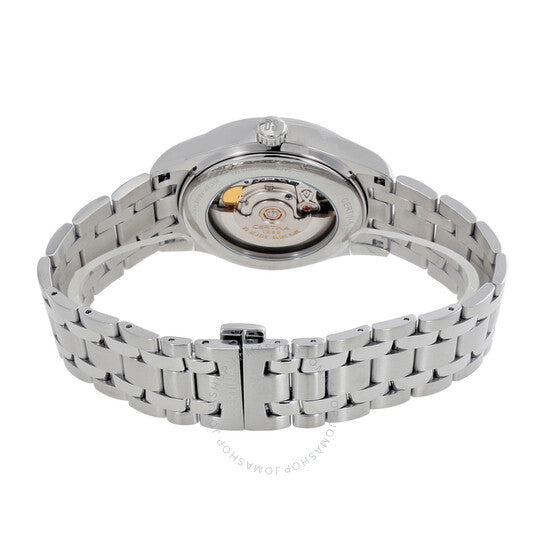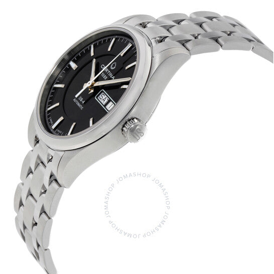 علبة من الفولاذ المقاوم للصدأ مع سوار من الفولاذ المقاوم للصدأ. إطار ثابت من الفولاذ المقاوم للصدأ. ميناء أسود مع عقارب ومؤشرات ساعات فضية مضيئة. مؤشرات دقائق حول الحافة الخارجية. نوع الميناء: تناظري. عقارب ومؤشرات مضيئة. عرض يوم الأسبوع والتاريخ عند موضع الساعة 3. حركة أوتوماتيكية ETA 2836-2 مع احتياطي طاقة لمدة 40 ساعة. زجاج ياقوت مقاوم للخدش. تاج قابل للسحب/الدفع. حجم العلبة: 38 مم. سمك العلبة: 12 مم. شكل العلبة دائري. عرض السوار: 20 مم. مشبك قابل للطي بزر ضغط. مقاومة للماء حتى عمق 100 متر / 330 قدمًا. الوظائف: التاريخ، اليوم، الساعة، الدقيقة، الثانية. تصميم كاجوال. علامة الساعة: صناعة سويسرية. ساعة سيرتينا DS 4 Day-Date أوتوماتيكية للرجال C022.430.11.051.00.