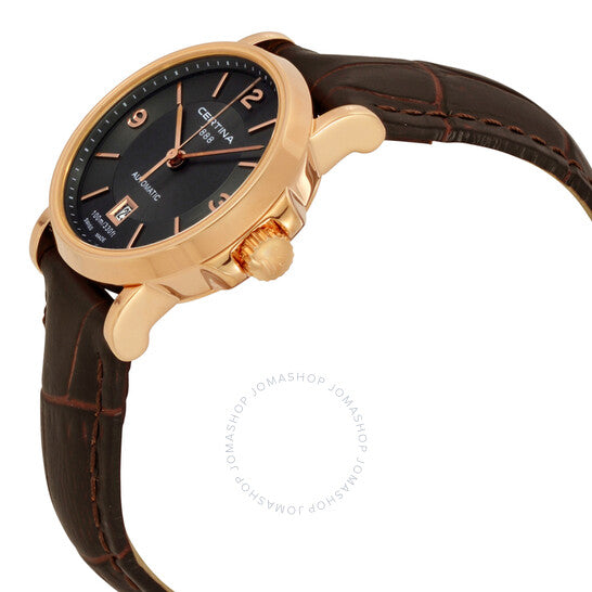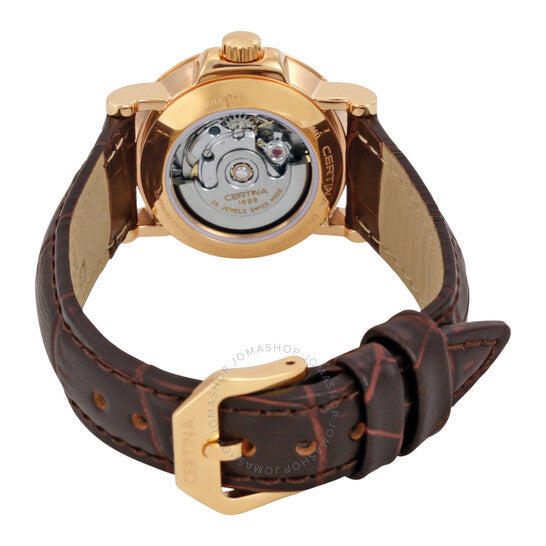 علبة من الفولاذ المقاوم للصدأ بلون الذهب الوردي مع سوار جلدي بني. إطار ثابت بلون الذهب الوردي. ميناء أسود بعقارب صلبة وعلامات ساعات. أرقام عربية تُشير إلى الساعات 3 و9 و12. علامات دقائق حول الحافة الخارجية. نوع الميناء: تناظري. عرض التاريخ عند الساعة 6. حركة أوتوماتيكية ETA 2671 مع احتياطي طاقة لمدة 38 ساعة. زجاج من الياقوت المقاوم للخدش. ظهر هيكلي. حجم العلبة: 27 مم. شكل دائري. مشبك تانغ. مقاومة للماء حتى عمق 100 متر / 330 قدمًا. الوظائف: التاريخ، الساعة، الدقائق، الثواني. تصميم كاجوال. علامة الساعة: صناعة سويسرية. ساعة سيرتينا دي إس كايمانو النسائية الأوتوماتيكية C0172073608700.