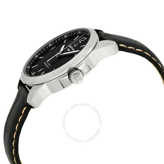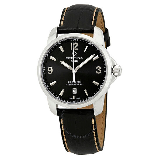 علبة من الفولاذ المقاوم للصدأ مع سوار جلدي أسود. إطار ثابت من الفولاذ المقاوم للصدأ. ميناء أسود بعقارب فضية مضيئة ومؤشرات ساعات. أرقام عربية تُشير إلى الساعات 3 و9 و12. علامات دقائق حول الحافة الخارجية. نوع الميناء: تناظري. عقارب مضيئة. نافذة عرض التاريخ عند الساعة 6. حركة سيرتينا كاليبر باورماتيك 80 (ETA C07.111) أوتوماتيكية، مبنية على ETA 2824-2، تحتوي على 23 جوهرة، تنبض بتردد 21600 ذبذبة في الساعة، ولديها احتياطي طاقة يدوم حوالي 80 ساعة. زجاج من الياقوت المقاوم للخدش. تاج لولبي. غطاء خلفي شفاف. شكل دائري. حجم العلبة: 38 مم. سمك العلبة: 11 مم. عرض السوار: 21 مم. مشبك فراشة. مقاومة للماء حتى عمق 100 متر / 330 قدمًا. الوظائف: التاريخ، الساعة، الدقائق، الثواني. سلسلة Ds Podium. تصميم ساعة كاجوال. علامة الساعة: صناعة سويسرية. ساعة سيرتينا دي إس بوديوم أوتوماتيكية للرجال بمينا أسود C034.407.16.057.00.