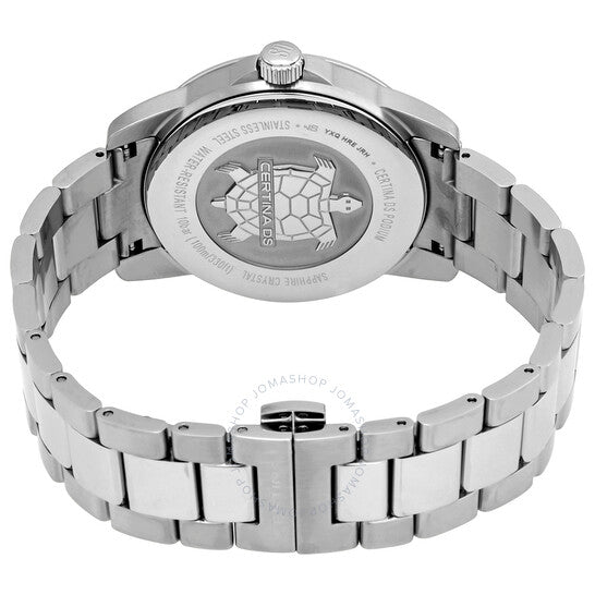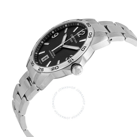 علبة من الفولاذ المقاوم للصدأ مع سوار من الفولاذ المقاوم للصدأ. إطار ثابت من الفولاذ المقاوم للصدأ. ميناء أسود بعقارب فضية مضيئة ومؤشرات ساعات. أرقام عربية تُشير إلى الساعات 3 و9 و12. مؤشرات دقائق حول الحافة الخارجية. نوع الميناء: تناظري. عقارب ومؤشرات مضيئة. عرض التاريخ عند الساعة 6. حركة كوارتز Precidrive™. زجاج ياقوت مقاوم للخدش. تاج لولبي. غطاء خلفي صلب. شكل دائري. حجم العلبة: 40 مم. سمكها: 9.42 مم. عرض السوار: 20 مم. مشبك قابل للطي. مقاومة للماء حتى عمق 100 متر / 330 قدمًا. الوظائف: التاريخ، الساعة، الدقائق، الثواني. سلسلة Ds Podium. تصميم ساعة كاجوال. علامة الساعة: صناعة سويسرية. ساعة Certina DS Podium كوارتز بمينا سوداء C034.451.11.057.00.