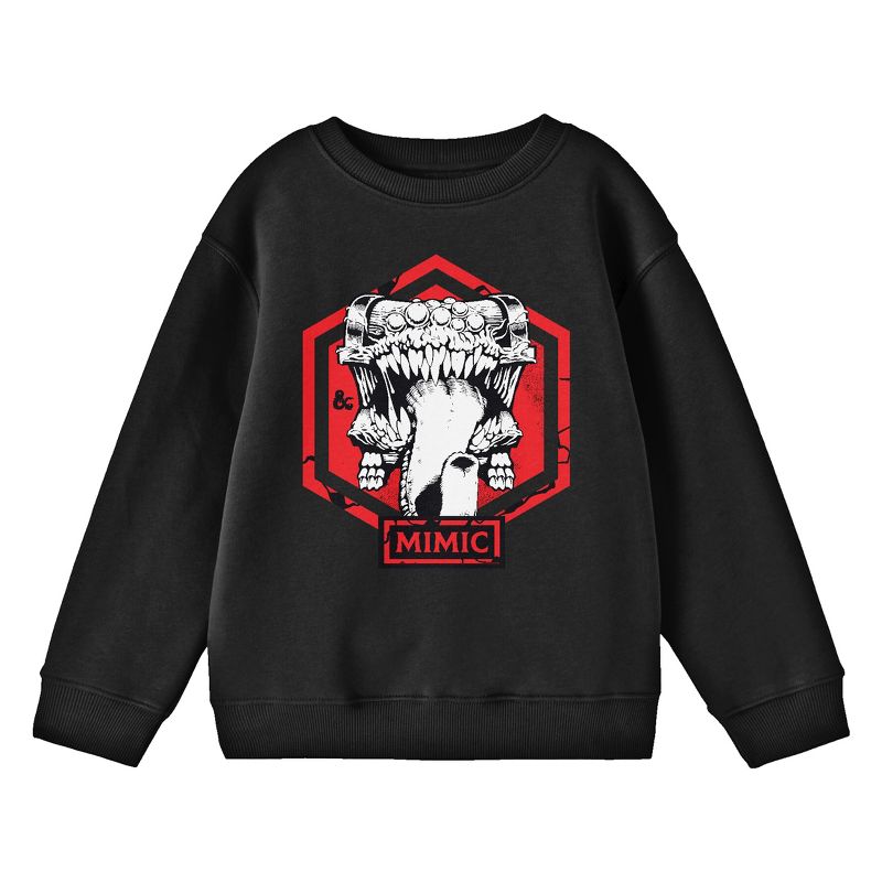 ابحث عن الكنز براحة مع هذا التيشيرت المستوحى من لعبة Dungeons & Dragons. يتميز القميص بصورة بالأبيض والأسود لوحش صندوق الكنز "ميميك" أمام شكل نرد أحمر من نوع D20، بينما تُهجى أحرف حمراء أسفل الصورة باسم المخلوق. يأتي التيشيرت بأكمام طويلة وياقة دائرية سوداء. سيحب عشاق Dungeons & Dragons هذا التيشيرت المريح والدافئ.