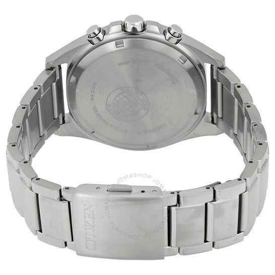 علبة تيتانيوم رمادية اللون مع سوار تيتانيوم رمادي. إطار تيتانيوم رمادي ثابت. ميناء أزرق مع عقارب ومؤشرات ساعات فضية مضيئة. مؤشرات دقائق حول الحافة الخارجية. نوع الميناء: تناظري. عقارب ومؤشرات مضيئة. عرض التاريخ بين موضعي الساعة الرابعة والخامسة. كرونوغراف - ثلاثة موانئ فرعية تعرض: ٦٠ ثانية، ٦٠ دقيقة، و٢٤ ساعة. حركة سيتيزن عيار B620 إيكو-درايف. زجاج معدني مقاوم للخدش. تاج قابل للسحب/الدفع. غطاء خلفي صلب. شكل دائري. حجم الهيكل: ٤١ مم. سمك الهيكل: ١١.٦ مم. عرض السوار: ٢٠ مم. مشبك قابل للطي بزر ضغط. مقاومة للماء حتى عمق ١٠٠ متر / ٣٣٠ قدمًا. الوظائف: كرونوغراف، تاريخ، ساعة، دقيقة، ثانية. تصميم كاجوال. ملصق الساعة: Japan Movt. ساعة سيتيزن إيكو-درايف كرونوغراف رجالية من التيتانيوم بمينا أزرق CA4390-55L.