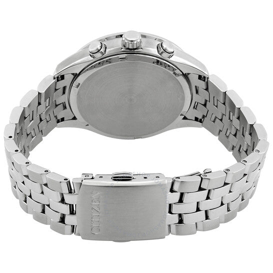 علبة وسوار من الفولاذ المقاوم للصدأ فضي اللون. إطار ثابت من الفولاذ المقاوم للصدأ فضي اللون. ميناء أخضر بعقارب وعلامات ساعات فضية اللون. علامات دقائق حول الحافة الداخلية. مقياس سرعة الدوران حول الحافة الخارجية. نوع الميناء: تناظري. عرض التاريخ بين موضعي الساعة 4 و5. كرونوغراف - ثلاثة أقراص فرعية تعرض: 60 ثانية، 60 دقيقة، و24 ساعة. حركة Citizen Caliber Eco-Drive H504 eco-drive. كريستال ياقوت مقاوم للخدش. غطاء خلفي صلب. شكل العلبة دائري، مقاسها: 42 مم، سمكها: 10.5 مم. مشبك قابل للطي بزر ضغط. مقاومة للماء حتى عمق 100 متر / 330 قدم. الوظائف: كرونوغراف، تاريخ، ساعة، دقيقة، ثانية، تعمل بالطاقة الشمسية. طراز ساعة رياضية. ملصق الساعة: Japan Movt. ساعة Citizen Eco-Drive Chronograph للرجال بمينا أخضر AT2149-85X.