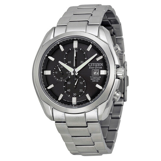 علبة من التيتانيوم مع سوار من التيتانيوم. إطار ثابت من التيتانيوم. ميناء أسود بعقارب مضيئة ومؤشرات ساعات. مؤشرات دقائق حول الحلقة الخارجية. عقارب ومؤشرات مضيئة. عرض التاريخ عند موضع الساعة الثالثة. كرونوغراف - ثلاثة موانئ فرعية تعرض: ٢٤ ساعة، ٣٠ دقيقة، و٦٠ ثانية. حركة كوارتز يابانية. كريستال ياقوت مقاوم للخدش والانعكاس. تاج من الفولاذ المزخرف. غطاء خلفي صلب. قطر العلبة: ٤٣ مم. سُمكها: ١١ مم. قابلة للطي مع مشبك بزر ضغط. مقاومة للماء حتى عمق ١٠٠ متر / ٣٣٠ قدمًا. الوظائف: الساعات، الدقائق، الثواني، التقويم، الكرونوغراف. ساعة سيتيزن إيكو-درايف كرونوغراف تيتانيوم للرجال CA0020-56E.