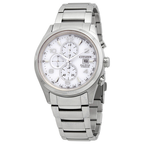 علبة تيتانيوم رمادية اللون مع سوار تيتانيوم رمادي. إطار ثابت من التيتانيوم الرمادي. ميناء أبيض بعقارب فضية مضيئة وأرقام عربية وعلامات ساعات متناوبة. علامات دقائق. علامات تاكيميتر حول الحافة الخارجية. نوع الميناء: تناظري. عقارب وعلامات مضيئة. عرض التاريخ عند موضع الساعة 3. كرونوغراف - ثلاثة أقراص فرعية تعرض: 60 ثانية، 60 دقيقة، و24 ساعة. آلية حركة إيكو-درايف. زجاج ياقوت مقاوم للخدش. تاج قابل للسحب/الدفع. غطاء خلفي صلب. شكل دائري. حجم الهيكل: 43 مم. سمك الهيكل: 10 مم. عرض السوار: 21 مم. مشبك قابل للطي بزر ضغط. مقاومة للماء حتى عمق 100 متر / 330 قدمًا. الوظائف: كرونوغراف، تاريخ، ساعة، دقيقة، ثانية، تاكيميتر. تصميم كاجوال. ساعة سيتيزن إيكو-درايف للرجال بمينا أبيض من التيتانيوم CA0650-82A.