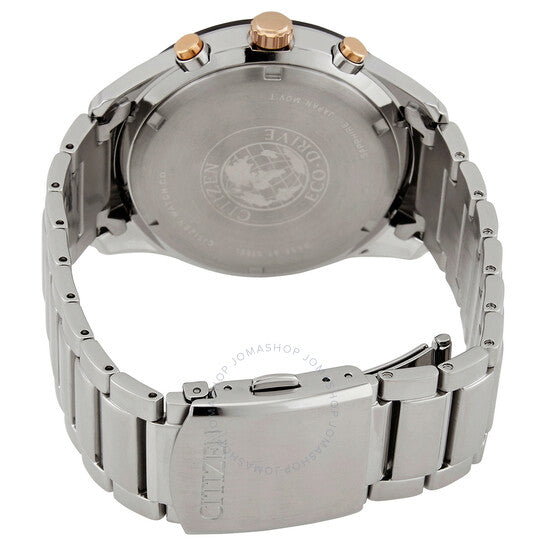 علبة من الفولاذ المقاوم للصدأ مع سوار من الفولاذ المقاوم للصدأ. إطار ثابت من الفولاذ المقاوم للصدأ مع حلقة سوداء مرصعة تُظهر علامات التاكيميتر. ميناء بني مع عقارب مضيئة بلون الذهب الوردي وعلامات مؤشر للساعات. علامات دقائق بأرقام عربية (بفاصل 5 دقائق). علامات دقائق حول الحافة الخارجية. نوع الميناء: تناظري. عقارب وعلامات مضيئة. عرض التاريخ بين موضعي الساعة 4 و5. حركة Citizen عيار B620 eco-drive. زجاج ياقوت مقاوم للخدش. تاج قابل للسحب/الدفع. غطاء خلفي صلب. شكل دائري. مقاس الهيكل: 43 مم. سمك الهيكل: 11 مم. عرض السوار: 22 مم. مشبك قابل للطي بزر ضغط. مقاومة للماء حتى عمق 100 متر / 330 قدمًا. الوظائف: كرونوغراف، تاكيميتر، تاريخ، ساعة، دقيقة، ثانية. سلسلة Eco. تصميم كاجوال. ساعة Citizen Eco Chronograph للرجال بمينا بني CA4456-83X.