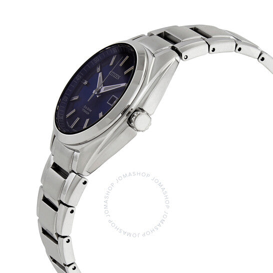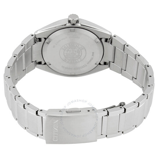 علبة وسوار من التيتانيوم الرمادي (فائق الجودة). إطار ثابت من التيتانيوم الرمادي (فائق الجودة). ميناء أزرق مع عقارب مضيئة فضية اللون وعلامات ساعات. علامات دقائق بأرقام عربية (بفاصل ٥ دقائق). علامات دقائق حول الحافة الخارجية. نوع الميناء: تناظري. عقارب مضيئة. عرض التاريخ عند موضع الساعة ٣. حركة سيتيزن إيكو درايف عيار E011 مع احتياطي طاقة يصل إلى ١٨٠ يومًا. زجاج ياقوت مقاوم للخدش. تاج قابل للسحب/الدفع. غطاء خلفي صلب. شكل دائري. حجم العلبة: ٣٤ مم. سمكها: ٩ مم. عرض السوار: ١٦ مم. مشبك قابل للطي بزر ضغط. مقاومة للماء حتى عمق ١٠٠ متر / ٣٣٠ قدمًا. الوظائف: التاريخ، الساعة، الدقيقة، الثانية. سلسلة إيكو درايف. تصميم كاجوال. ملصق الساعة: Japan Movt. ساعة سيتيزن إيكو درايف نسائية من التيتانيوم بمينا أزرق EW2210-53L.