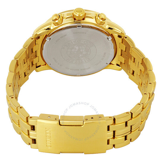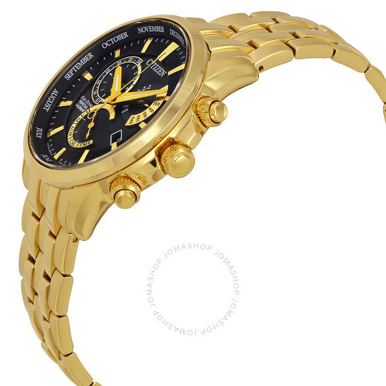 علبة وسوار من الفولاذ المقاوم للصدأ ذهبي اللون. إطار ذهبي ثابت. ميناء أسود بعقارب ذهبية اللون وعلامات ساعات. علامات دقائق. أشهر السنة حول الحافة الخارجية. نوع الميناء: تناظري. عقارب مضيئة. نافذة عرض التاريخ عند موضع الساعة الرابعة. ثلاثة مؤشرات: ١٢-٢٤ ساعة، يوم الأسبوع (منبه)، والوقت المزدوج. حركة كوارتز سيتيزن كاليبر إيكو-درايف E870. زجاج ياقوتي مقاوم للخدش. غطاء خلفي صلب. حجم العلبة: ٤٢ مم. سُمكها: ١٢ مم. شكلها دائري. عرض السوار: ٢٢ مم. مشبك قابل للطي مع مفتاح أمان. مقاومة للماء حتى عمق ١٠٠ متر / ٣٣٠ قدمًا. الوظائف: الساعات، الدقائق، الثواني، التقويم الدائم، المنبه، الوقت المزدوج. تصميم ساعة رياضية. ساعة سيتيزن إيكو درايف بيربتشوال للرجال BL8142-50E.