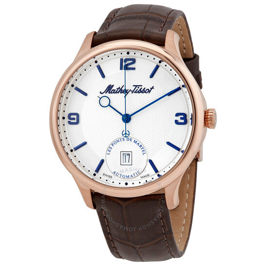 علبة من الفولاذ المقاوم للصدأ مطلية بالذهب الوردي بتقنية PVD مع حزام من الجلد البني. إطار ثابت من الفولاذ المقاوم للصدأ مطلي بالذهب الوردي بتقنية PVD. ميناء أبيض بعقارب زرقاء وعلامات ساعات. تظهر الأرقام العربية عند الساعة 3 و9 و12. علامات الدقائق حول الحافة الخارجية. نوع الميناء: تناظري. عرض التاريخ عند الساعة 6. حركة أوتوماتيكية Sellita Caliber SW200، تحتوي على 26 جوهرة، تنبض بمعدل 28800 ذبذبة في الساعة، ولديها احتياطي طاقة لمدة 38 ساعة تقريبًا. كريستال ياقوت مقاوم للخدش. تاج سحب/دفع. غطاء خلفي شفاف. شكل دائري، حجم العلبة: 42 مم، سمك العلبة: 11 مم. مشبك تانغ. مقاومة للماء حتى عمق 50 مترًا / 165 قدمًا. الوظائف: التاريخ، الساعة، الدقيقة، الثانية. سلسلة إدموند الأوتوماتيكية. نمط ساعة كاجوال. ملصق الساعة: صنع سويسري. ساعة ماثي تيسوت إدموند الأوتوماتيكية للرجال بمينا بيضاء AC1886PI.