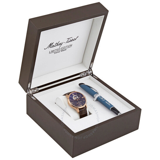 علبة من الفولاذ المقاوم للصدأ بلون الذهب الوردي مع حزام جلدي بني. إطار ثابت بلون الذهب الوردي. ميناء بني متدرج (قلب مفتوح) مع عقارب ومؤشرات ساعات بلون الذهب الوردي. أرقام رومانية عند الساعة 3 و6 و9 و12. نوع الميناء: تناظري. حركة أوتوماتيكية Peseux P225 مع احتياطي طاقة لمدة 38 ساعة. زجاج ياقوت مقاوم للخدش ومضاد للانعكاس. تاج قابل للسحب/الدفع. غطاء خلفي شفاف. شكل دائري. حجم العلبة: 42 مم. سمك العلبة: 11 مم. عرض السوار: 20 مم. مشبك قابل للطي. مقاومة للماء حتى عمق 50 مترًا / 165 قدمًا. الوظائف: الساعة، الدقيقة، الثانية. معلومات إضافية: إصدار محدود من 99 قطعة. سلسلة إدموند لو أوبن هارت. تصميم ساعة كاجوال. علامة الساعة: صناعة سويسرية. ساعة ماثي تيسوت إدموند إل إي أوبن هارت أوتوماتيكية للرجال MC1886PI.