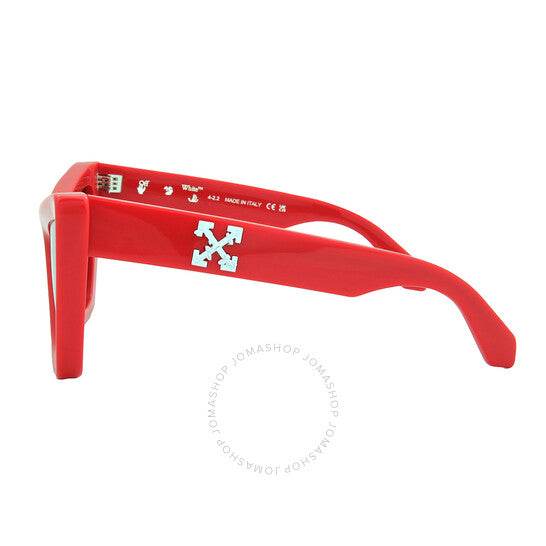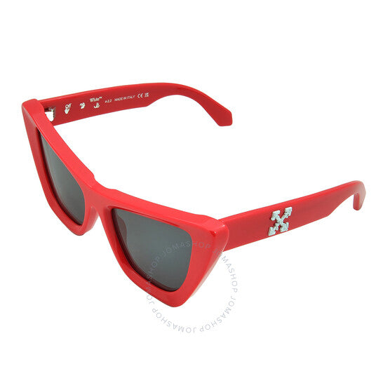 نظارات شمسية أوف وايت. سلسلة إدوارد. رقم السلسلة: OERI045. رمز اللون: 2507. الشكل: عين القطة. عرض العدسة: 57 مم. جسر العدسة: 20 مم. طول الذراع: 145 مم. حماية 100% من الأشعة فوق البنفسجية. غير مستقطب. مادة الإطار: أسيتات. لون الإطار: أحمر. نوع العدسات: رمادي داكن. نمط الحافة: حافة كاملة. رمز UPC/EAN: 8052865851039. نظارات شمسية أوف وايت إدوارد رمادية داكنة، عين القطة، نسائية، OERI045 2507.