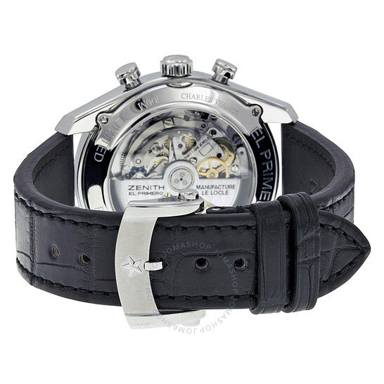 علبة من الفولاذ المقاوم للصدأ مع سوار أسود من جلد التمساح. إطار ثابت من الفولاذ المقاوم للصدأ. ميناء أزرق مع عقارب وعلامات ساعات فضية مضيئة. علامات دقائق، ومقياس سرعة حول الحافة الخارجية. نوع الميناء: تناظري. عقارب وعلامات مضيئة. عرض التاريخ عند موضع الساعة السادسة. كرونوغراف - ثلاثة أقراص فرعية تعرض: 60 ثانية، 30 دقيقة، و12 ساعة. حركة أوتوماتيكية من عيار Zenith El Primero 400B، مبنية على Zenith El Primero 400، تحتوي على 31 جوهرة، تتكون من 328 جزءًا، تنبض بمعدل 36000 ذبذبة في الساعة، ولديها احتياطي طاقة لمدة 50 ساعة تقريبًا. زجاج ياقوت مقاوم للخدش. تاج قابل للسحب/الدفع. غطاء خلفي شفاف. شكل دائري. حجم العلبة: 42 مم. سمك العلبة: 12.75 مم. عرض السوار: 20 مم. طول السوار: 8 بوصات. مشبك تانغ. مقاومة للماء حتى عمق ١٠٠ متر / ٣٣٠ قدمًا. الوظائف: كرونوغراف، تاريخ، ساعات، دقائق، ثوانٍ. سلسلة El Primero 36000 Vph. تصميم ساعة فاخر. علامة الساعة: صناعة سويسرية. إصدارات المنتج: 03 2041 400/51 C496، 03-2041-400/51-C496، 03/2041/400/51/C496، 032041400/51C496. ساعة Zenith El Primero 36 000 Vph للرجال 03.2041.400/51.C496.