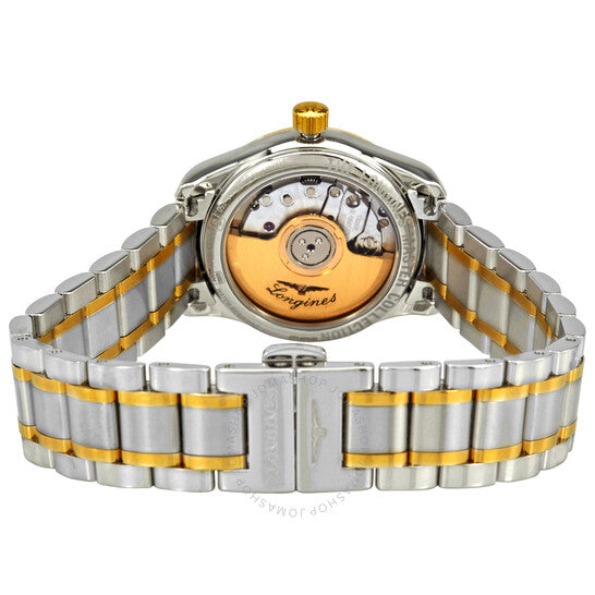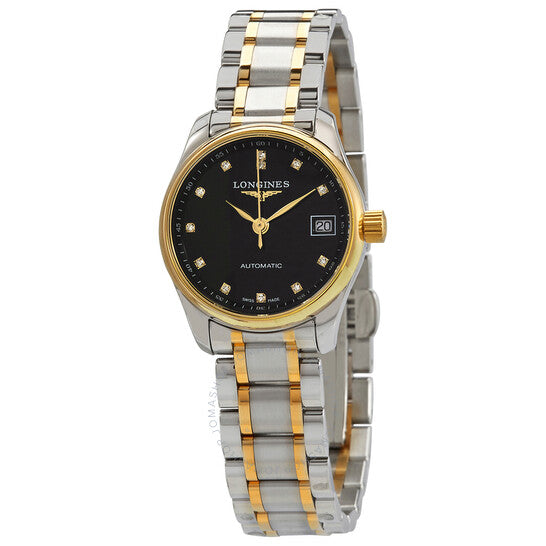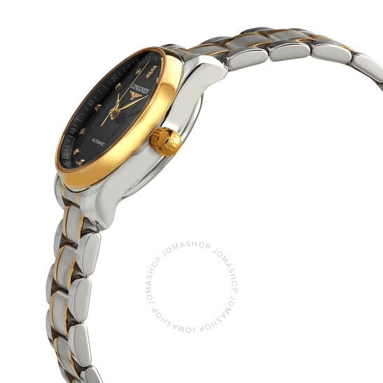 علبة من الفولاذ المقاوم للصدأ مع سوار من الفولاذ المقاوم للصدأ بوصلات من الذهب الأصفر عيار 18 قيراطًا. إطار ثابت من الذهب الأصفر عيار 18 قيراطًا. ميناء أسود بعقارب من الذهب الأصفر وعلامات ساعات من الماس. علامات دقائق بأرقام عربية (بفاصل 5 دقائق). علامات دقائق حول الحافة الخارجية. نوع الميناء: تناظري. عرض التاريخ عند موضع الساعة 3. حركة لونجين أوتوماتيكية من عيار L595، مبنية على ETA 2000/1، تحتوي على 20 جوهرة، تنبض بمعدل 28800 ذبذبة في الساعة، ولديها احتياطي طاقة لمدة 40 ساعة تقريبًا. زجاج من الياقوت المقاوم للخدش. تاج قابل للسحب/الدفع. غطاء خلفي شفاف. شكل دائري. حجم العلبة: 25.5 مم. سمك العلبة: 9 مم. عرض السوار: 14 مم. مشبك قابل للطي بزر ضغط للتحرير. مقاومة للماء حتى عمق 30 مترًا / 100 قدم. الوظائف: التاريخ، الساعة، الدقيقة، الثانية. سلسلة أنيقة. طراز ساعة فاخرة. ملصق الساعة: صناعة سويسرية. ساعة لونجين الأنيقة الأوتوماتيكية للسيدات بمينا أسود مرصعة بالألماس L2.128.5.57.7.
