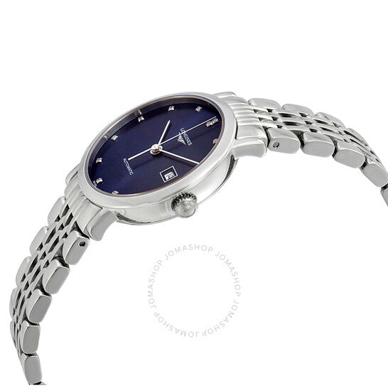 علبة من الفولاذ المقاوم للصدأ مع سوار من الفولاذ المقاوم للصدأ. إطار ثابت من الفولاذ المقاوم للصدأ. ميناء أزرق بعقارب فضية اللون وعلامات ساعات من الألماس. نوع الميناء: تناظري. عرض التاريخ عند موضع الساعة الثالثة. حركة لونجين الأوتوماتيكية عيار L592، مبنية على ETA A20.L01، تحتوي على 22 جوهرة، تنبض بمعدل 28800 ذبذبة في الساعة، ولديها احتياطي طاقة لمدة 40 ساعة تقريبًا. زجاج من الياقوت المقاوم للخدش. تاج قابل للسحب/الدفع. غطاء خلفي شفاف. شكل دائري. حجم العلبة: 29 مم. سمكها: 8.5 مم. عرض السوار: 14 مم. مشبك فراشة. مقاومة للماء حتى عمق 30 مترًا / 100 قدم. الوظائف: التاريخ، الساعة، الدقيقة، الثانية. طراز ساعة رسمية. علامة الساعة: صناعة سويسرية. رقم الموديل: L43104976. ساعة لونجين الأنيقة الأوتوماتيكية النسائية بمينا زرقاء مرصعة بالألماس L4.310.4.97.6.