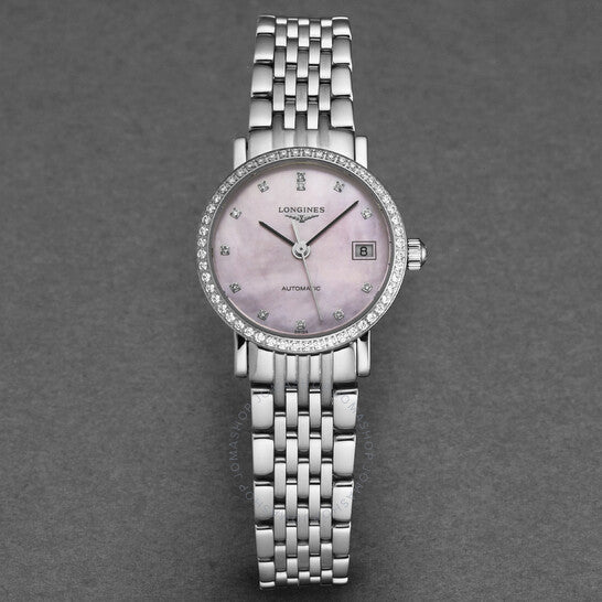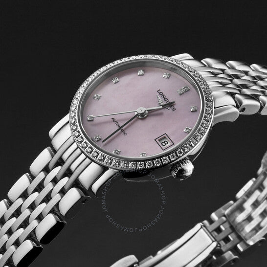 علبة وسوار من الفولاذ المقاوم للصدأ فضي اللون. إطار ثابت من الفولاذ المقاوم للصدأ فضي اللون. ميناء وردي بعقارب فضية اللون وعلامات ساعات من الألماس. نوع الميناء: تناظري. عرض التاريخ عند موضع الساعة الثالثة. حركة لونجين أوتوماتيكية بعيار L595، مبنية على ETA 2000/1، تحتوي على 20 جوهرة، تنبض بمعدل 28800 ذبذبة في الساعة، ولديها احتياطي طاقة لمدة 40 ساعة تقريبًا. زجاج ياقوتي مقاوم للخدش. علبة دائرية الشكل، مقاسها: 25.5 مم، سمكها: 8 مم. عرض السوار: 13 مم. مشبك قابل للطي. مقاومة للماء حتى عمق 30 مترًا / 100 قدم. الوظائف: التاريخ، الساعة، الدقيقة، الثانية. معلومات إضافية: العلبة الأصلية، بطاقة الضمان الدولية، دليل الاستخدام (ملحقات كاملة). سلسلة أنيقة. تصميم ساعة فاخرة. ملصق الساعة: صناعة سويسرية. ساعة لونجين أنيقة أوتوماتيكية نسائية بمينا وردي مرصعة بالألماس L4.309.0.89.6.