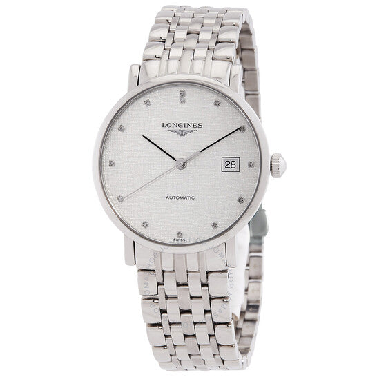 علبة من الفولاذ المقاوم للصدأ مع سوار من الفولاذ المقاوم للصدأ. إطار ثابت من الفولاذ المقاوم للصدأ. ميناء فضي مخطط بعقارب سوداء وعلامات ساعات من الألماس. نوع الميناء: تناظري. عرض التاريخ عند موضع الساعة 3. حركة لونجين كاليبر L888 أوتوماتيكية، مبنية على ETA A31.L11، تحتوي على 21 جوهرة، تنبض بمعدل 25200 ذبذبة في الساعة، ولديها احتياطي طاقة لمدة 64 ساعة تقريبًا. زجاج من الياقوت المقاوم للخدش. تاج قابل للسحب/الدفع. غطاء خلفي شفاف. شكل دائري. حجم العلبة: 37 مم. عرض السوار: 19 مم. مشبك قابل للطي. مقاومة للماء حتى عمق 30 مترًا / 100 قدم. الوظائف: التاريخ، الساعة، الدقيقة، الثانية. معلومات إضافية: ميناء مرصع بـ 13 ماسة ويسلتون VS-SI، بإجمالي وزن 0.032 قيراط. سلسلة أنيقة. طراز ساعة رسمية. علامة الساعة: صناعة سويسرية. ساعة لونجين أنيقة أوتوماتيكية مرصعة بالألماس للجنسين L4.810.4.77.6