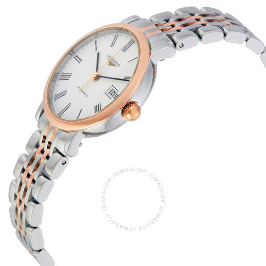 علبة من الفولاذ المقاوم للصدأ مع سوار من الفولاذ المقاوم للصدأ بوصلات من الذهب الوردي عيار 18 قيراطًا. إطار ثابت من الذهب الوردي عيار 18 قيراطًا. ميناء أبيض غير لامع بعقارب سوداء وعلامات ساعات رومانية. علامات دقائق حول الحافة الخارجية. نوع الميناء: تناظري. عرض التاريخ عند موضع الساعة 3. حركة أوتوماتيكية من عيار لونجين L595/592 مع احتياطي طاقة لمدة 40 ساعة. زجاج ياقوت مقاوم للخدش. تاج ضغط/سحب. غطاء خلفي شفاف. حجم العلبة: 29 مم. شكل دائري. مشبك قابل للطي. مقاومة للماء حتى عمق 30 مترًا / 100 قدم. الوظائف: التاريخ، الساعة، الدقائق، الثواني. تصميم ساعة فاخرة. علامة الساعة: صناعة سويسرية. ساعة لونجين النسائية الأنيقة الأوتوماتيكية L4.310.5.11.7.