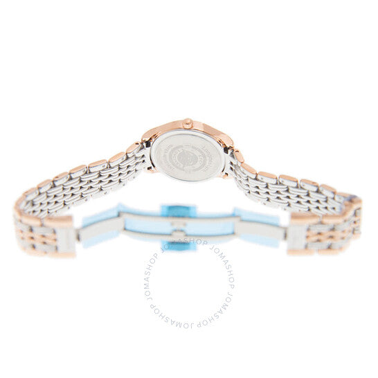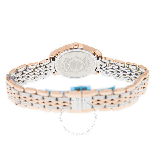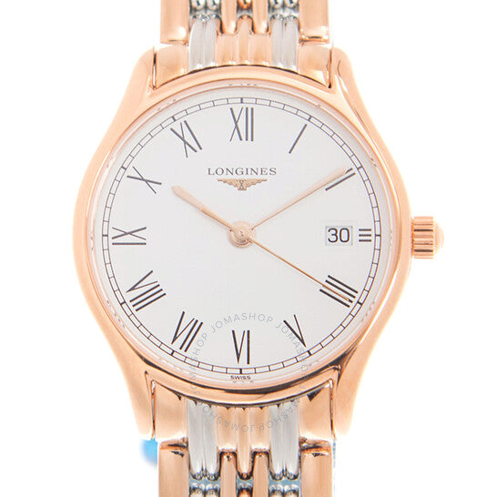 علبة من الفولاذ المقاوم للصدأ بلون الذهب الوردي، مع سوار من الفولاذ المقاوم للصدأ بلونين (فضي وذهبي وردي). إطار ثابت من الفولاذ المقاوم للصدأ بلون الذهب الوردي. ميناء أبيض بعقارب بلون الذهب الوردي وعلامات ساعات بأرقام رومانية. علامات دقائق حول الحافة الخارجية. نوع الميناء: تناظري. عرض التاريخ عند موضع الساعة 3. حركة كوارتز. زجاج ياقوتي مقاوم للخدش. غطاء خلفي صلب. شكل العلبة دائري، مقاسها: 25 مم. مشبك قابل للطي مع قفل أمان. الوظائف: التاريخ، الساعة، الدقائق، الثواني. معلومات إضافية: العلبة الأصلية، دليل الاستخدام (ملحقات كاملة). سلسلة أنيقة. تصميم ساعة فاخرة. علامة الساعة: صناعة سويسرية. ساعة لونجين النسائية الأنيقة كوارتز بمينا بيضاء L4.259.1.11.7.