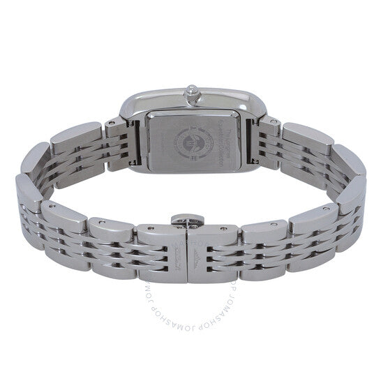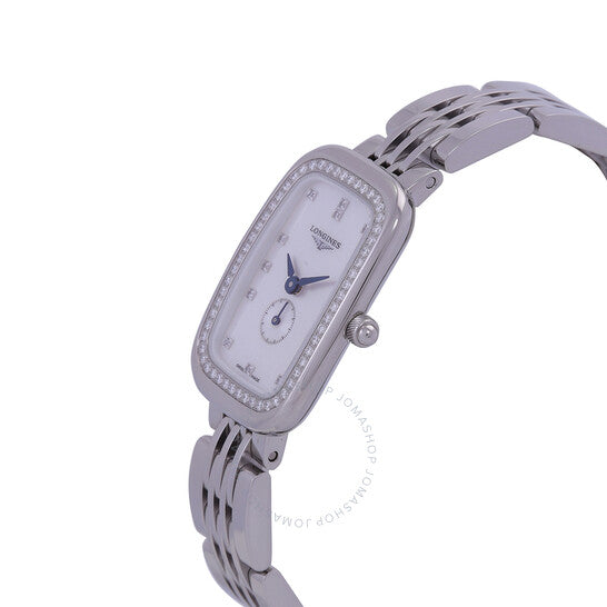علبة وسوار من الفولاذ المقاوم للصدأ فضي اللون. إطار ثابت فضي اللون مرصع بالألماس من الفولاذ المقاوم للصدأ. ميناء من عرق اللؤلؤ مع عقارب زرقاء وعلامات ساعات من الألماس. نوع الميناء: تناظري. حركة كوارتز لونجين كاليبر L178. زجاج ياقوت مقاوم للخدش. تاج قابل للسحب/الدفع. غطاء خلفي صلب. شكل العلبة مستطيل، مقاسها: 22 مم، سمكها: 6.2 مم. عرض السوار: 12 مم، طوله: 7 بوصات. مشبك قابل للطي بزر ضغط. مقاومة للماء حتى عمق 30 مترًا / 100 قدم. الوظائف: الساعات، الدقائق، الثواني. معلومات إضافية: الساعات، الدقائق، الثواني الصغيرة، مؤشر عمر البطارية. سلسلة إكويستريان. تصميم ساعة فاخرة. علامة الساعة: صناعة سويسرية. ساعة لونجين إكويستريان كوارتز نسائية مرصعة بالألماس L6.141.0.87.6.