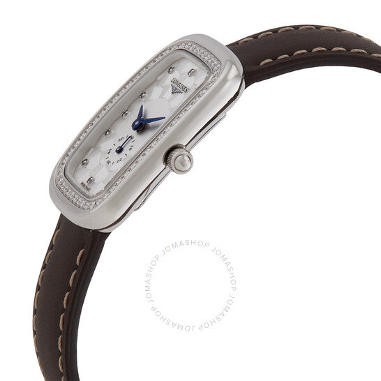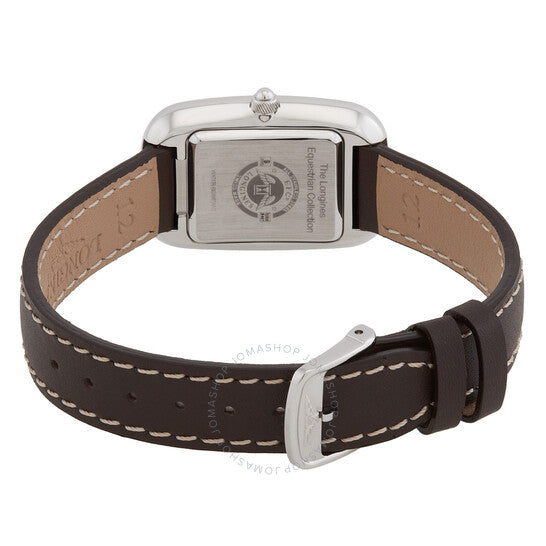 علبة من الفولاذ المقاوم للصدأ فضية اللون مع سوار جلدي بني. إطار ثابت من الألماس فضي اللون. ميناء فضي اللون مع عقارب زرقاء وعلامات ساعات من الألماس. نوع الميناء: تناظري. حركة كوارتز سويسرية. زجاج ياقوت مقاوم للخدش. تاج قابل للسحب/الدفع. غطاء خلفي صلب. شكل العلبة مستطيل، مقاسها: ٢٢ مم، سمكها: ٦.٢ مم. عرض السوار: ١٢ مم، طوله: ٧ بوصات. مشبك تانغ. مقاومة للماء حتى عمق ٣٠ مترًا / ١٠٠ قدم. الوظائف: الساعات، الدقائق، الثواني. معلومات إضافية: الساعات، الدقائق، الثواني الصغيرة. سلسلة إكويستريان. تصميم ساعة فاخرة. ساعة لونجين إكويستريان النسائية الماسية بمينا فضية اللون L61410772.