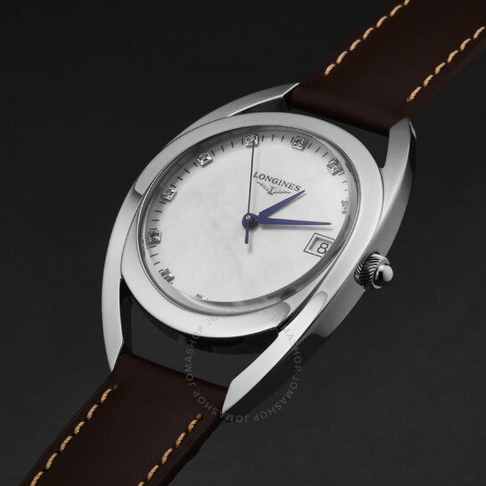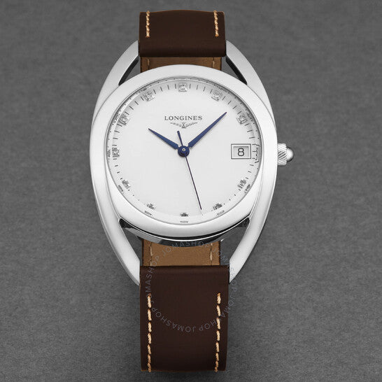 علبة فضية اللون من الفولاذ المقاوم للصدأ مع سوار جلدي بني. إطار ثابت فضي اللون من الفولاذ المقاوم للصدأ. ميناء أبيض بعقارب زرقاء وعلامات ساعات من الألماس. علامات دقائق حول الحافة الخارجية. نوع الميناء: تناظري. عرض التاريخ عند موضع الساعة 3. حركة كوارتز لونجين كاليبر L157. زجاج ياقوتي مقاوم للخدش. علبة دائرية الشكل، مقاسها: 34 مم. عرض السوار: 16 مم. مقاومة للماء حتى عمق 30 مترًا / 100 قدم. الوظائف: التاريخ، الساعة، الدقائق، الثواني، مؤشر عمر البطارية. معلومات إضافية: العلبة الأصلية، بطاقة الضمان الدولية، دليل الاستخدام (ملحقات كاملة). سلسلة إكويستريان. طراز ساعة فاخرة. ملصق الساعة: صناعة سويسرية. ساعة لونجين إكويستريان كوارتز نسائية بمينا بيضاء مرصعة بالألماس L6.138.4.87.2.