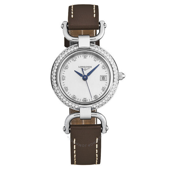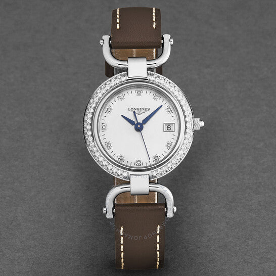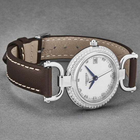 علبة من الفولاذ المقاوم للصدأ مع سوار من جلد العجل البني. إطار ثابت. ميناء من عرق اللؤلؤ. نوع الميناء: تناظري. عرض التاريخ عند موضع الساعة 3. حركة كوارتز من لونجين كاليبر L152. كريستال ياقوت مقاوم للخدش. تاج قابل للسحب/الدفع. غطاء خلفي صلب. شكل العلبة دائري، مقاسها: 30 مم. عرض السوار: 14 مم. مقاومة للماء حتى عمق 30 مترًا / 100 قدم. الوظائف: التاريخ، الساعة، الدقيقة، الثانية. سلسلة إكويستريان. اسم الساعة: صناعة سويسرية. ساعة لونجين إكويستريان كوارتز نسائية L6.131.0.89.2.