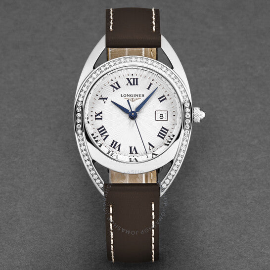 علبة فضية اللون من الفولاذ المقاوم للصدأ مع سوار جلدي بني. إطار مرصع بالألماس. ميناء فضي بعقارب زرقاء وعلامات ساعات رومانية. علامات دقائق حول الحافة الخارجية. نوع الميناء: تناظري. عرض التاريخ عند موضع الساعة 3. حركة كوارتز لونجين كاليبر L152. زجاج ياقوت مقاوم للخدش. غطاء خلفي صلب. شكل العلبة بيضاوي، مقاسها 30 مم. مقاومة للماء حتى عمق 30 مترًا / 100 قدم. الوظائف: التاريخ، الساعة، الدقيقة، الثانية. معلومات إضافية: إطار مرصع بـ 61 ماسة (0.359 قيراط). سلسلة إكويستريان. طراز ساعة رسمية. علامة الساعة: صناعة سويسرية. ساعة لونجين إكويستريان كوارتز نسائية بمينا فضي، L6.137.0.71.2.