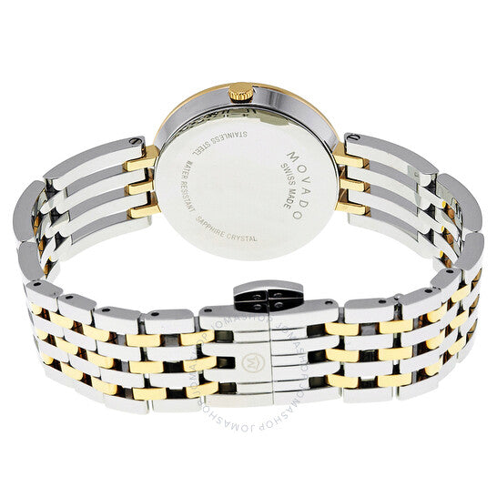 علبة من الفولاذ المقاوم للصدأ مع سوار من الفولاذ المقاوم للصدأ بلونين (فضي وذهبي مطلي بتقنية PVD). إطار ذهبي ثابت مطلي بتقنية PVD. ميناء أسود بتصميم متحفي مع عقارب ذهبية اللون. بدون علامات. تشير نقطة موفادو إلى موضع الساعة ١٢. نوع الميناء: تناظري. حركة كوارتز. زجاج معدني مقاوم للخدش من نوع K1. غطاء خلفي صلب. حجم العلبة: ٢٨ مم. سُمكها: ٦ مم. شكلها دائري. عرض السوار: ١٤ مم. مشبك قابل للطي بزر ضغط للتحرير. مقاومة للماء حتى عمق ٣٠ مترًا / ١٠٠ قدم. الوظائف: الساعات، الدقائق. معلومات إضافية: بشكل عام، تتحمل رذاذ الماء أو الغمر لفترة وجيزة، ولكنها غير مناسبة للسباحة أو الاستحمام. تصميم ساعة كاجوال. علامة الساعة: صناعة سويسرية. ساعة موفادو إسبيرانزا سوداء بمينا متحفي نسائية ٠٦٠٧٠٥٣.